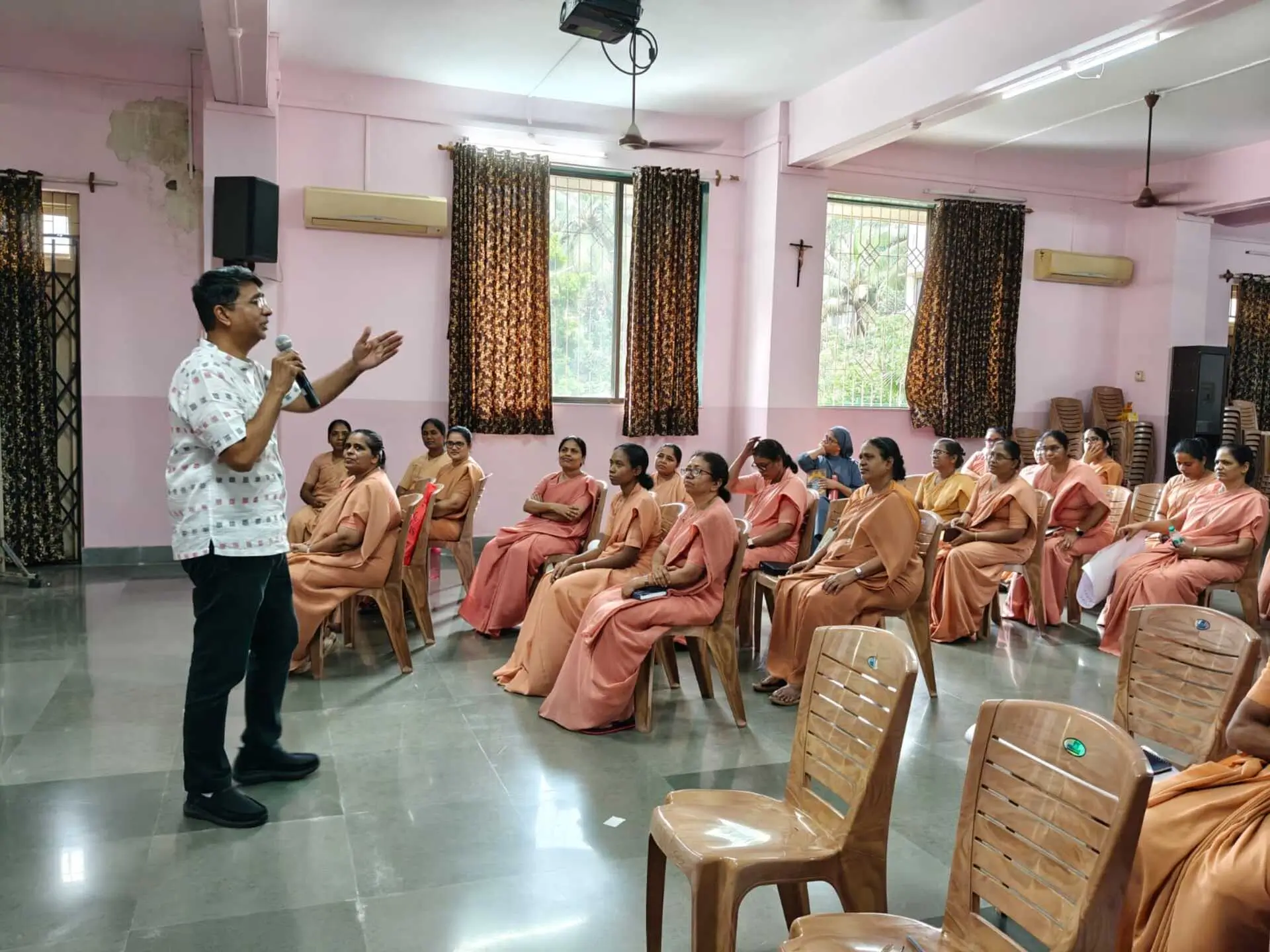 35 sisters from different communities attended the seminar. The resource persons Prof. Anthony Colaco from Saraf College, Malad and Sr. Joyce (Psychologist) from St. Paul's Bandra, were the speakers. They covered topics on Personal management, and emotional well-being. The sisters enthusiastically participated in various activities during the sessions to enhance their abilities in the field of education.